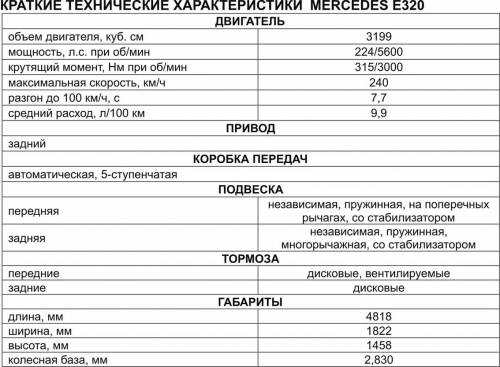Среди инноваций “Ешки” можно отметить примененную впервые в классе пневматическую подвеску и панорамную стеклянную крышу. Особого внимания заслуживают электрогидравлические тормоза Sensotronic, которые автоматически подсушивают тормозные диски на мокрой дороге. Но подобные “штучки” теперь предлагаются и конкурентами. Они пытаются всячески отнять пальму первенства у Mercedes, и… в отдельных случаях им это удается. Если же возвращаться к стоимости “настоящего” Е-клсса, то это будет Mercedes Е350 мощностью 272 л.с. с “автоматом” и кожаным салоном в версии “Элеганс” или “Авангард”. Для этого нужно подготовить 45.000 Euro. Иначе Е-класс для настоящих ценителей Mercedes-Benz просто не представляется. Это как фрак, который обязательно нужно надевать, идя на прием. Или в строгом деловом костюме. Альтернативой могут стать дизельные версии. Здесь царит преимущественно холодный расчет, но вариант Е270 CDi является также оптимальным. Хотя он и не лишен своих недостатков по части вибраций. Возможным недостатком можно посчитать отсутствие механической КПП для новой версии Е350, которая пришла на смену Е320, также комплектующейся исключительно автоматической КПП. Но это стратегия компании и расчет на целевую аудиторию покупателей Mercedes-Benz. Кому не нравится - прямая дорога к BMW. Там всегда найдутся варианты как для степенных, так и дерзких людей. Е-класс же нельзя назвать ни консервативным, ни прогрессивным. Он законодатель автомобильной моды для своего класса, и у него всегда есть чему поучиться, чтобы по возможности сделать что-то лучшее.
