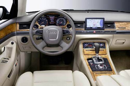 Дизайн интерьера выполнен в “драйверском” стиле флагмана Audi - А8. Центральная консоль развернута влево, “баранка” с трапецие-видной центральной частью визуально повторяет форму решетки радиатора. Как и у А8, за рычагом коробки передач располагается джойстик информационной системы MMI.