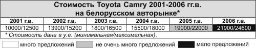 На фоне чопорных европейских конкурентов Toyota Camry выглядит крепким «середнячком». У нее нет ни благородной внешности, ни отменных ездовых качеств, ни обязательного для бизнес-класса престижа и напыщенной респектабельности. Но на рынке подержанных автомобилей Toyota Camry ценят не за это. Эту «японку» берут, брали и будут брать за ее главное достоинство – надежность.