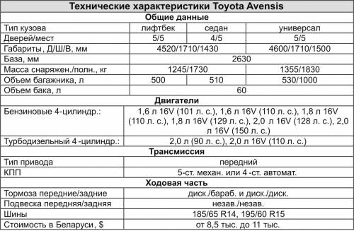 Есть в моторной гамме Avensis и турбодизель - это 2-литровый 8-клапанный 2С-Т (2С-TE).