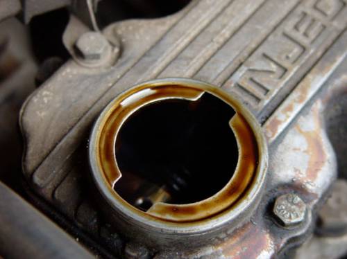 Иногда не лишним будет заглянуть под крышку маслозаливной горловины. Налет на самой крышке может подсказать о некоторых неисправностях мотора