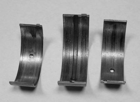 Судя по характеру износа рабочей поверхности этих вкладышей коленчатого вала, владелец автомобиля несвоевременно менял фильтр, и в результате неочищенное масло циркулировало по системе в обход забитого грязью фильтрующего элемента