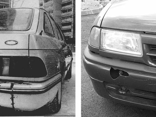 Например, при работе с набором Dinitrol Plastic Repair Kit требуется зашкуренную наждачной бумагой поверхность, подлежащую ремонту, протереть очистителем и через пару минут после этого нанести грунтовку. Грунтовка высыхает за пять минут, после чего в зависимости от типа пластмассы (жесткая или эластичная) на ремонтируемое место наносится один из двух ремонтных составов. Состав отвердевает за 15 мин., затем его можно полировать, шпаклевать, если требуется, и красить. Все: очиститель, грунтовка, ремонтные составы, пистолет для их нанесения и специальная пленка для распределения состава по поверхности и придания ему нужной формы, - прилагаются в наборе. Время работы - менее часа. Один недостаток - стоит такой набор порядка 150 у.е., что сужает круг лиц, которым он интересен, до профессионалов автосервиса или кустарей, которые ремонт бамперов в своем гараже поставили на поток. В простейших случаях и без покраски заделка сквозного отверстия размером 10 кв. см или трещины длиной 10 см обойдется в сумму 10-15 у.е. Однако с увеличением размеров и усложнения формы повреждения или, если бампер в поврежденном месте имеет хитрую конфигурацию, стоимость услуги возрастает, причем не пропорционально, а в геометрической прогрессии.
