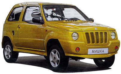 Прошлым летом средства массовой информации сообщили о том, что БелАЗ приобрел у российского АСМ-холдинга (бывшее Министерство автомобильного и сельскохозяйственного машиностроения) лицензию на производство микроавтомобиля “Мишка”. В основу конструкции “Мишки” положена сборно-модульная схема, в которой на каркас из низколегированной стали навешиваются пластмассовые панели. У автомобиля съемный задний колпак, что по желанию владельца обеспечивает быстрое превращение прямо в гараже четырехместного универсала, каковым является базовая версия “Мишки”, в пикап, фургон, кабриолет или ландо (не этого ли, кстати, хотелось Opel при разработке Calibra?).