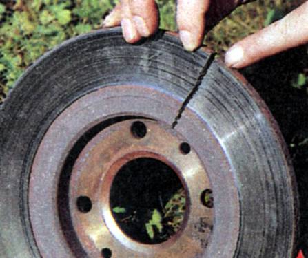 Собственно говоря, тормозные диски требуют замены по трем причинам. Первая — износ до критической величины, которой считается остаточная толщина диска менее 9 мм (разумеется, если диск не вентилируемый). Вторая — коробление диска из-за продолжительного действия высоких температур. В этом случае эффективность торможения резко снижается, диск приобретает осевое биение, отдающееся толчками на педали тормоза. Наконец, при серьезных термических перегрузках диск способен не только треснуть, но и вовсе развалиться на части.