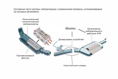 Составные части системы нейтрализации с применением мочевины, устанавливаемые на легковые автомобили
