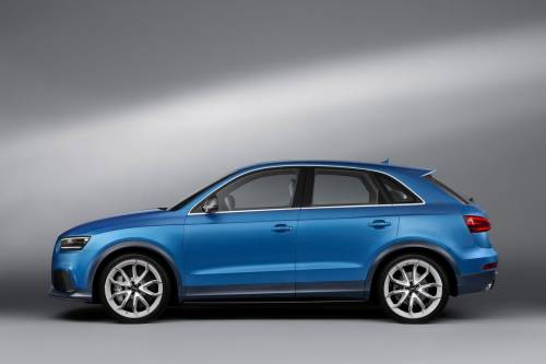RS Q3 на 25 мм ниже серийной модели Q3, у его огромные диски (20x8,5 дюймов). Передняя часть кроссовера выполнена в злом спортивном стиле, где большая часть пространства используется для забора воздуха. Выставочная модель окрашена в синий цвет Ordos Blue.