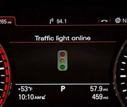 На практике это означает, что будущие Audi смогут подсказать водителю оптимальную скорость движения, чтобы не стоять на ближайшем перекрестке. Если машина уже стоит, то на экране комбинации приборов появится таймер обратного отсчета до включения зеленого сигнала.