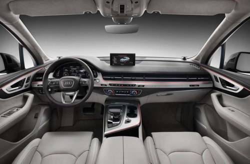 Новинка оснащается полностью цифровой панелью приборов, мультимедийной системой MMI второго поколения с большим сенсорным экраном и графикой NVIDIA, а также проекционным дисплеем. Для Q7 будут предлагаться большой список опций, включая светодиодные матричные фары головного света, 1920-ваттная аудиосистема Bang & Olufsen с 23 динамиками, развлекательный комплекс для задних пассажиров. В состав последнего входят два 10,1-дюймовых планшета с HD-камерами, 32 гигабайтами памяти, поддержкой Bluetooth, NFC и сетей LTE. Планшеты смогут подключаться к MMI по WiFi.