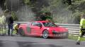 Прототип электрического суперкара Audi R8 e-tron попал в аварию на «Северной петле» Нюрбургринга, сообщает Motorauthority. Тест-пилот не справился с управлением в повороте Pflanzgarten и автомобиль ударился в отбойник. В результате пострадала вся левая часть машины.