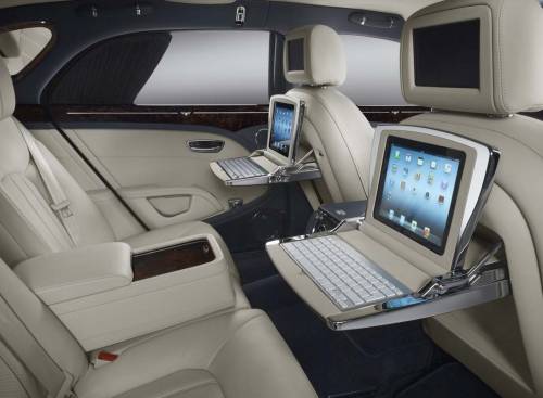 Обладатель нового Bentley уехал на новом роскошном автомобиле класса Grand Tourer – Mulsanne, оборудованным комфортными подголовниками, подставками для ног, набитыми утиным пухом незакрепленными подушками, столиками для пикника с размещенными внутри них планшетами iPad и беспроводной клавиатурой. При желании салон Mulsanne можно превратить в точку доступа для беспроводного интернета. Среди дополнительных элементов модели – защитные шторки, позволяющие пассажирам задней части салона Mulsanne ощутить совершенно новый уровень комфорта, способствующий эффективной работе и полноценному отдыху.