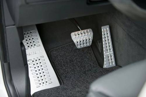 В салоне установлены новое трехспицевое рулевое колесо, алюминиевые педали и карбоновые детали отделки.