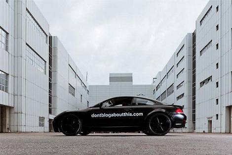 Компания BMW запустила специальный сайт под названием "Don't Blog About This" (что можно перевести как "Не пишите об этом в блог"), на котором опубликованы фотографии и видеоролики неизвестного тестового прототипа.