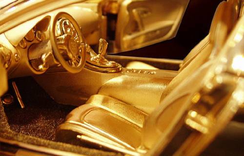 Миниатюра изготовлена в масштабе 1:18 из 24-каратного золота, решетка ее радиатора украшена бриллиантом весом более 7 каратов. Общий вес копии составляет 7 килограммов. Купить этот Bugatti можно примерно за $ 2,4 млн. Всего Хьюз намерен выпустить три экземпляра Bugatti Veyron, на изготовление каждого уйдет около 2 месяцев.