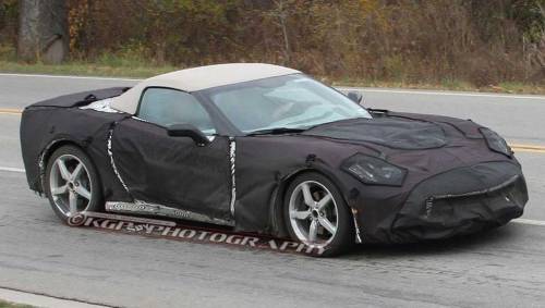 Никакой подтвержденной технической информации нет, но на снимках очевидно, что новый Corvette Stingray получит тканевый верх. |