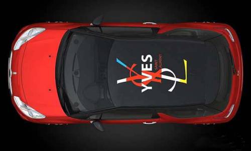 Автомобиль выполнен в красном цвете с черной крышей, на которую нанесен оригинальный символ Ива Сена Лорана.
