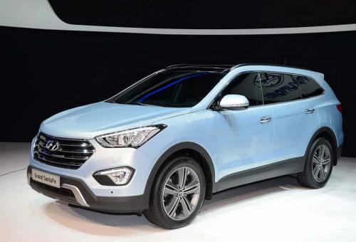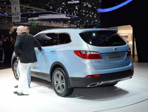 Hyundai привезла в Женеву семиместный кроссовер Grand Santa Fe, призваный составить конкуренцию вместительным внедорожникам европейского рынка. Чтобы уместить в салон автомобиля три ряда сидений, Grand-санта вырос на 225 мм в длину, и на символические 5 и 10 мм в высоту и ширину соответственно. Колёсную базу обычного Santa Fe удлинили на 100 мм. Объём багажника в 607 литров при разложенных трёх рядах сидений один из лучших в классе семиместных кроссоверов (у «Кашкая+2» — 450 литров).