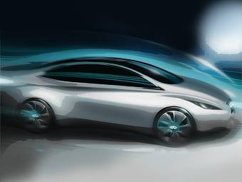 Компания Infiniti опубликовала скетч своего первого электрокара. Как говорится в пресс-релизе автопроизводителя, продажи новинки начнутся в 2013 году.