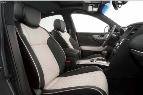 В салоне QX70 Limited появилась контрастная отделка из черной и бежевой кожи, а также декоративные панели из полированного алюминия.