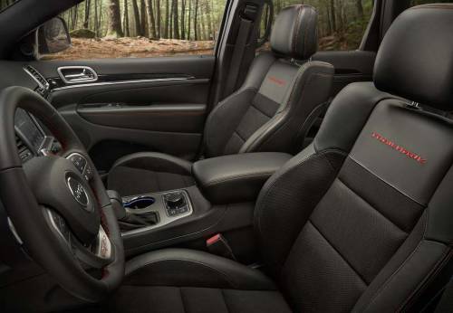 Новый вариант Jeep Grand Cherokee отличается от остальных версий увеличенными воздухозаборниками в бампере, «четырёхствольной» выпускной системой с черными патрубками по бокам заднего бампера и увеличенным спойлером на дверце багажника. Внутри: самая качественная из используемых маркой Jeep кожа, карбоновые вставки, «срезанный» трехспицевый руль, 7-дюймовый инфодисплей с тахометром в центре, а также 8.4-дюймовый дисплей мультимедийного комплекса Uconnect. На экран выводится информация о перегрузках, настройках подвески/трансмиссии/силового агрегата, время круга и другая информация. Опционально доступно оформление с алюминиевыми вставками в салоне и 825-ваттная аудиосистема Harman Kardon с 19 динамиками и двумя сабвуферами.