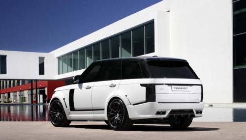 Кроме того, Range Rover обзавелся новым капотом, накладками на пороги и расширителями колесных арок. В результате кузов Range Rover стал шире на 100 мм. Сзади установили спойлер на крыше и новый задний бампер с карбоновым диффузором.