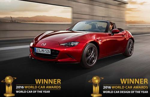 Четвертое поколение Mazda MX-5 был назван лучшим автомобилем 2016 года в конкурсе «Всемирный автомобиль года» (World Car of the Year - WCOTY), а также автомобилем с лучшим дизайном в мире. Для Mazda награда «Всемирный автомобиль года» - это вторая награда после Mazda 2, которая получила ее в 2008 году, а также первая модель в истории награждения WCOTY, которая завоевала обе награды.