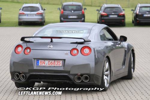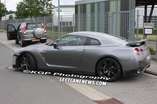 Одним из испытуемых оказался стандартный спорткар GT-R, вторым – специальная модификация модели под названием Spec V. Оба автомобиля, судя по первым "шпионским" фотографиям, получили модернизированные радиаторные решетки, новые диффузоры и модифицированные передние бамперы, которые придают спорткару, именуемому в народе "годзиллой", более агрессивный вид.