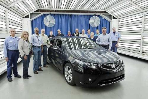 Первый предсерийный седан Opel Ampera 2012 сошел с конвейера в Уоррене, штат Мичиган, США. Автомобиль представляет из себя версию Chevrolet Volt для европейского рынка. Тем самым, выход первой машины является значительной вехой в реализации проекта.
