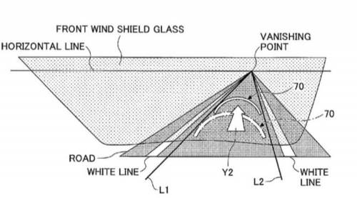 Как следует из патентной документации, дисплей работает вместе с камерой, которая следит за дорожной разметкой, а также датчиками, отслеживающими наклон автомобиля, угол поворота рулевого колеса и другую информацию о текущем состоянии транспортного средства. Ещё одна камера следит за направлением взгляда человека, благодаря чему «картинка» перемещается по горизонтали и вертикали, чтобы водитель точно знал положение на полосе и траекторию движения. С увеличением скорости изображение уменьшается и перемещается вверх, поскольку человек в таком случае смотрит дальше