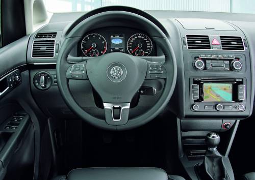 За рулем Touran водителю может показаться, что он находится в салоне Golf VI. Те же приборная панель, руль и белая подсветка приборов. Все выполнено на очень достойном уровне
