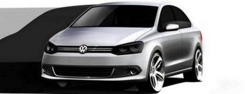 Опубликован новый скетч будущего бюджетного седана Volkswagen Vento, построенного на базе хэтчбека Polo.
