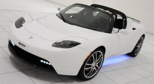 На Tesla Roadster установили дополнительную LED-оптику, которая расположилась на переднем бампере, модернизировали задний спойлер и диффузор, выполнив эти элементы из карбона, оснастили автомобиль подсветкой днища. Кузов электромобиля украшен логотипами Brabus со значками молнии, привлекающими внимание к необычности автомобиля.