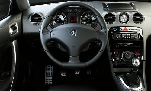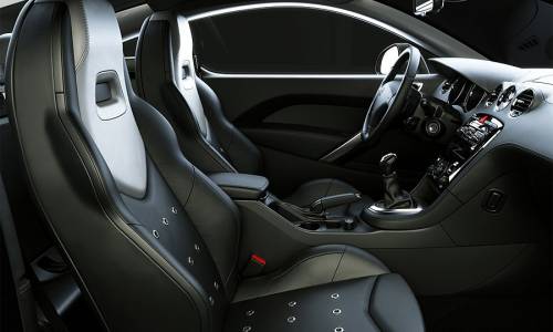 Салон машины еще со времен концепта был готов к серийному производству. Центральная консоль обтянута кожей с белой прострочкой, а через ее разрезы торчат очень знакомые хромированные элементы Peugeot. Знакомый руль почему-то не обзавелся переключателями радио или климат-контролем, очевидно, намекая на спортивный характер автомобиля, при котором водитель не должен излишне расслабляться. Непривычно выглядят разве что циферблаты на приборной панели, выполненной в новом и очень оригинальном дизайне. Бортовой компьютер все тот же – от серийных малолитражек. Еще одним ярким элементом салона является кожаная отделка сидений с декоративными металлическими кнопками, придающими очень агрессивный вид и без того спортивно выгнутым сиденьям. В серийной версии стоит ожидать более сдержанного салона, с меньшим количеством кожаной отделки, обычными однотонными сиденьями и чуть потускневшей приборной панелью; это, впрочем, не должно сильно повлиять на восприятие этого салона, зато должно существенно сберечь кошельки потенциальных покупателей.
