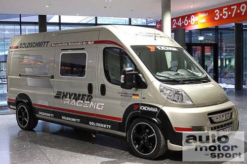 Hymer Car, сделанный на базе Fiat Ducato, является полноценным домом на колесах. Чтобы показать, на что он способен, кроме хорошей крыши над головой на время пикников и выездов на природу, Hymer совместно с тюнинг-ателье Goldschmitt создали самый быстрый автомобиль в своем классе.