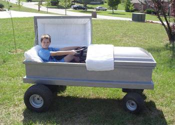 В США один умник построил для своего ребенка весьма оригинальный автомобиль. Он представляет собой… настоящий гроб.