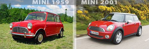 Яркий пример – MINI. Выпущенная в 2001 году абсолютно новая модель этого автомобиля несет в себе собирательный образ всех MINI начиная с 1959 года. Не зря компания BMW решила сохранить за собой этот бренд. Шустрые малютки по сей день пользуются широким спросом и любимы не только англичанами, но и многими людьми по всему миру.