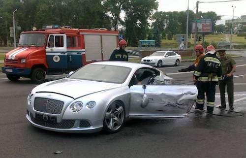 По словам свидетелей ДТП, "Бентли", двигаясь со стороны Мельникайте, на очень высокой скорости вылетел на встречную полосу движения, где и столкнулся с "Лексусом". В результате аварии произошло возгорание в салоне "Бентли". По информации Минского городского управления МЧС, возгорание было быстро ликвидировано. Одному из пассажиров оказана помощь. Других подробностей аварии ни в ГАИ, ни в МЧС выяснить не удалось.