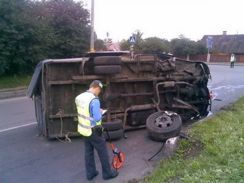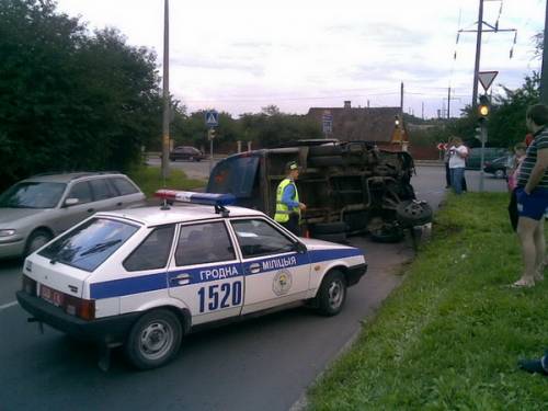 Вчера в 19.30 в Гродно на перекрестке улиц Тавлая – Брикеля перевернулась маршрутка. ГАЗель опрокинулась из-за того, что водитель наехал правым колесом на высокий бардюр, напоминающий трамплин. К счастью, жертв и серьезных травм удалось избежать.
