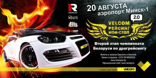 20 августа минский аэропорт вновь превратится в гоночную трассу. На взлетно-посадочной полосе пройдут гонки на 402 метра – «Velcom рейсинг нон-стоп 2.0». Именно в столице решится судьба чемпионата Беларуси по драгрейсингу. На эту гонку приедут сильнейшие гонщики из соседних стран, а так же лучшие белорусские спортсмены на своих мощных автомобилях.