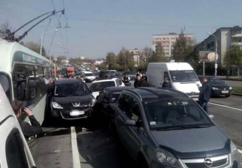 Сегодня утром, 4 мая 2016 года, примерно в 9:45, движение на проспекте Жукова в Минске остановилось из-за масштабной аварии. Авария произошла на пересечении проспекта Жукова и улицы Глаголева, столкнулись шесть автомобилей и троллейбус. Движение пришлось перекрыть - приехали бригады скорой помощи и ГАИ. Никто из участников ДТП не получил серьезных травм.