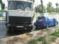 Затор образовался днем 15 августа на ул. Кижеватова в Минске. Причина – автомобильная авария. Водитель МАЗа потерял управление над автомобилем. Грузовик занесло, и он врезался в припаркованные около края проезжей части две легковушки.