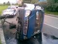 Вчера в 19.30 в Гродно на перекрестке улиц Тавлая – Брикеля перевернулась маршрутка. ГАЗель опрокинулась из-за того, что водитель наехал правым колесом на высокий бардюр, напоминающий трамплин. К счастью, жертв и серьезных травм удалось избежать.