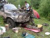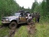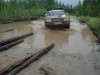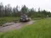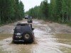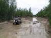 Впереди нас еще ждали, пожалуй, самые трудные километры. Часто разбортировались колеса. Резина слетала в глубокой глине, имеющей консистенцию домашней сметаны. За один день было пройдено всего 3 километра900 метров и почти весь путь на лебедках под холодным моросящим дождем. Mitsubishi, который уже пару дней попахивал горелым, окончательно встал. Не работает сцепление. Полностью промокшие становимся на ночлег прямо на дороге в болоте.