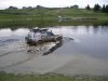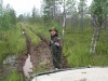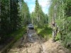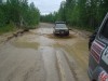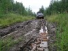От последнего населенного пункта, оставленного за спиной, деревни Мыла, пройдено всего 30 км, но на эти километры нам пришлось потратить целых шесть дней. Именно за эти дни нам удалось перепробовать самые различные приемы и тактику движения по болоту и на мокрых глинистых подъемах. Поняли, что без разведки не обойтись. Поэтому один или два человека уходят вперед, отыскивая проходы и устанавливая вешки, которые и будут основным ориентиром. Метров через 500 ‘’разведчики’’ поворачивают назад, корректируя кое-где будущий путь движения машин. После этого начинаем движение. ‘Разведчики’’ и штурман практически постоянно сопровождают головную машину. Я практически прошел весь тракт вперед-назад несколько раз, прокладывая маршрут и оставляя записки с рекомендациями, как лучше проходить очередное препятствие.