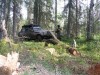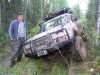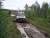 А еще дальше, в Архангельской области, пошли настоящие заполярные болота. Заполярное болото – очень интересное геологическое образование. На первый взгляд оно выглядит менее проходимым, чем на самом деле. Слой дерна и мха на нем достаточно плотный и вполне может выдержать автомобиль на спущенных шинах, и поэтому, не буксуя на первой пониженной передаче и выбирая дорогу – аккуратно-аккуратно, без рывков, на холостых оборотах, ехать можно. Но стоит только копнуть… Диагональные шины тут не годятся, так как слишком жесткие. При штурме болот при давлении 0,2 атм недолго и разбортироваться, что часто случалось. Покрышка монтируется на место с использованием… бензина и факела. Маленький взрыв – и все на месте. Подумали об установке в будущем на колесные диски стопорные устройства – ‘’бед-локи’’. Более легкая машина L200 движется значительно увереннее и преодолевает многие препятствия практически с ходу. Однако у нее все чаще пропадает зарядка. Лебедка быстро разряжает аккумулятор, и машина оказывается в трудной ситуации. Стоя в болоте с неработающим мотором, машина начинает тонуть. Не помогают даже сэнд-траки.