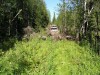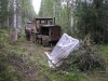 На следующий день наши надежды пройти за один день заключительную часть маршрута развеялись. Утром едем по чистой просеке, вокруг светлый бор, но, как все хорошее, такая дорога быстро заканчивается. Сухая поначалу дорога превратилась в залитую водой канаву. Местами дорожное полотно опустилось ниже уровня грунта и превратилось в участки болот. Ехать можно только по лесу. Применяем тактику последнего дня, взятую на вооружение у московской команды и, проламывая бамперами машин просеку, по лесу прокладываем себе путь. На машинах часто стали отказывать генераторы, поэтому пытаемся ехать сколько можно на аккумуляторах и отложить ремонт до вечера. От грязи и песка стираются щетки, но у нас есть в запасе новые. На одном из объездов находим брошенный гусеничный трактор, рядом шалаш. Хозяин ушел за запчастями. Мы встретили его на следующий день, он второй год пытается снять алюминий со столбов, но тайга отдает свое добро неохотно. За два года пройдено 30 километров.