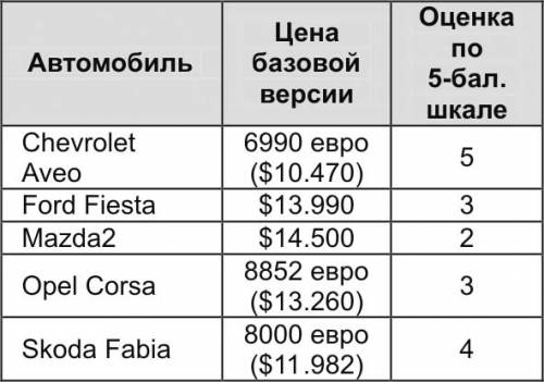 Традиционно базовые версии автомобилей Mazda не отличаются доступностью по сравнению с конкурентами – впрочем, цена здесь растет за счет более богатого оснащения. Цены на немецкие «Форд» и «Опель» тоже нельзя назвать демпинговыми, Skoda Fabia чуть дешевле, а самым доступным можно назвать седан Chevrolet Aveo, который по акции можно купить за $ 10.470.