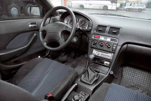Наиболее просторные и комфортные салоны – у Honda и Toyota, затем идут Nissan и Mazda. Вместе с тем среди участников обзора Toyota Carina (Е) практичнее и функциональнее всех. Судите сами – у этого автомобиля самый большой грузовой отсек – 545 л, и именно эта модель отличается наиболее просторным салоном – пятерым членам экипажа будет удобно даже при длительных переездах. Хватает запаса места и над головой. Претензии можно предъявить только к обзорности – в поворотах передние стойки немного перекрывают боковой обзор, а высокая «корма» ограничивает видимость заднего габарита машины.