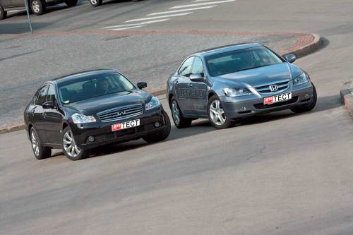 Honda Legend мощнее на 15 л.с., но мотор Infiniti М35х развивает больший на 12 Нм крутящий момент. Поэтому при равном весе машин «эмка» все же выигрывает в динамике.
