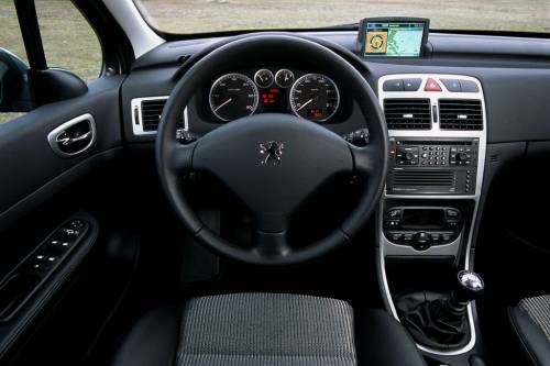 По качеству использованных материалов Peugeot 307 может поспорить с автомобилями классом выше. Интерьер отделан дорогим упругим пластиком, из которого выполнены верхняя часть передней панели и обивка дверей. Качество сборки и подгонки панелей высокое. Панель приборов выглядит лаконично и хорошо читается, органы управления искать не приходится.